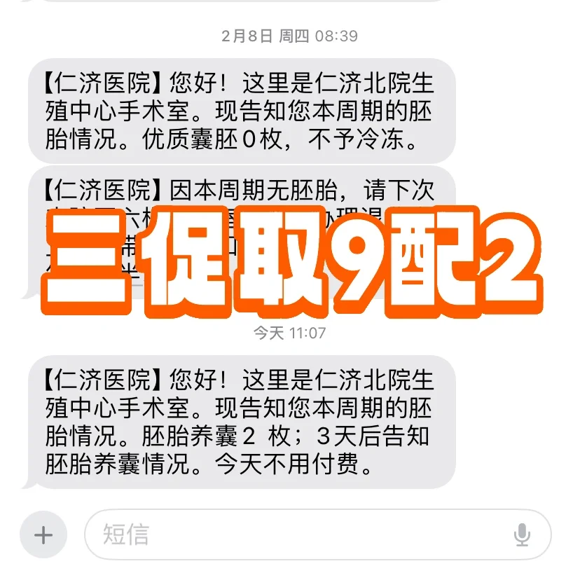 本来这次取了9个,想说至少能配成一半去养囊吧,结果收到短信,只配成2个D3胚胎拿去养囊。人有点懵,反复看了好几遍都不敢相信。于是好大夫问诊了张婷。